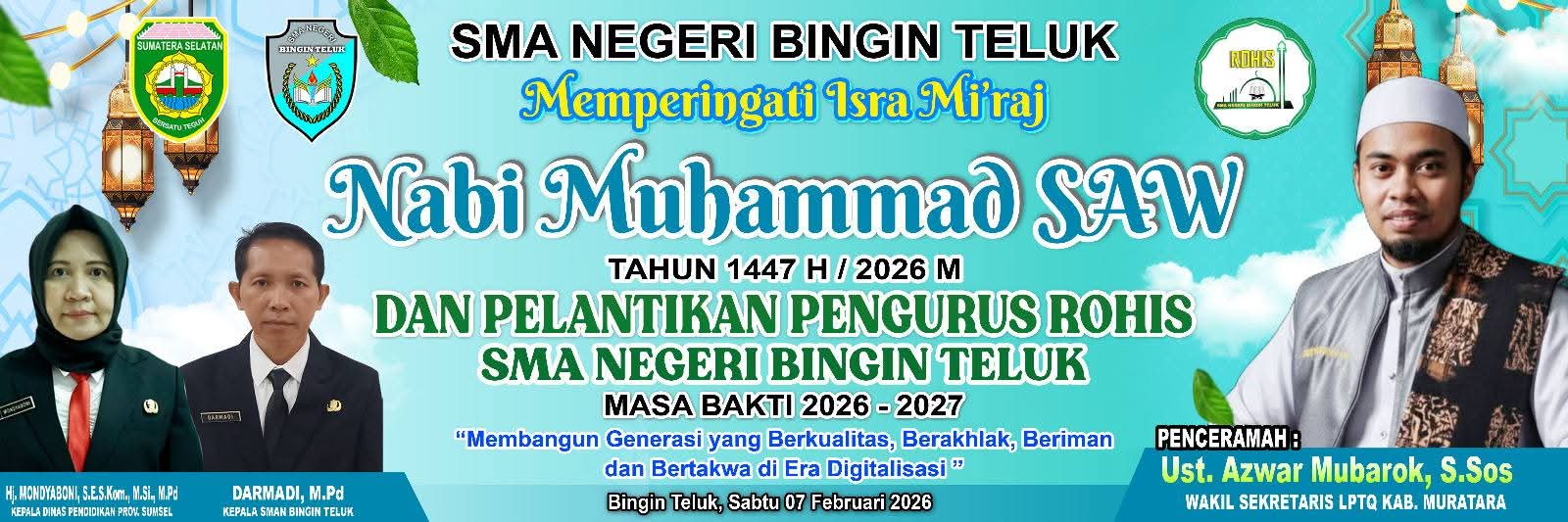 SMAN Bingin Teluk sukses menggelar peringatan Maulid Nabi Muhammad SAW 1447 H pada hari Sabtu, 20 September 2025. Mengusung tema “Meneladani Akhlak Mulia Nabi Muhammad SAW untuk Generasi Muda yang Berkarakter,” acara ini diwarnai dengan lomba nasyid antar kelas yang bertujuan melestarikan nilai-nilai Islam melalui lirik lagu yang dinyanyikan oleh para siswa.